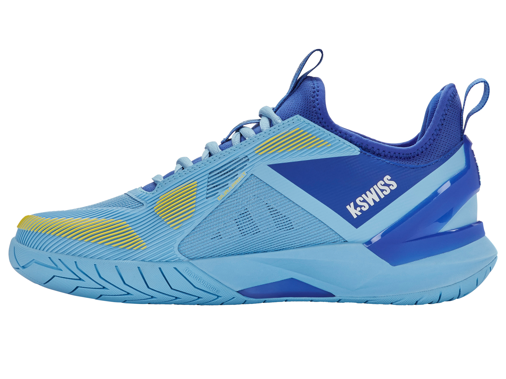 Delivering the stability and comfort needed for one of the most explosive hitters on the pro tour, the K-Swiss K-Frame Speed Rublo is designed by K-Swiss in collaboration with ATP star Andrey Rublev. Featuring an innovative TPU K-Frame located under the forefoot, these shoes provide the stability needed for quick and explosive changes of direction. Hyperfoam cushioning is placed underfoot for a plush yet responsive ride, while the Duraprint upper material supplies a great blend of breathability, support, and drag-protection. The outsole is comprised of Dragguard 7.0 rubber that enhances the durability and traction. We find these shoes to be optimal on hard courts, although the tread pattern will perform well on a variety of court surfaces.
